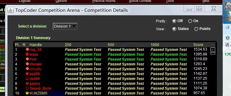 显然这次人品爆发的有点厉害。。话说每次我SRM的时候人品总会很好。。。这次好到了令人发指的程度。。。。
